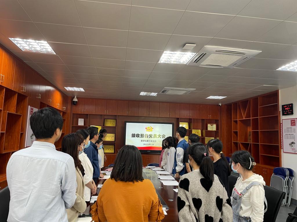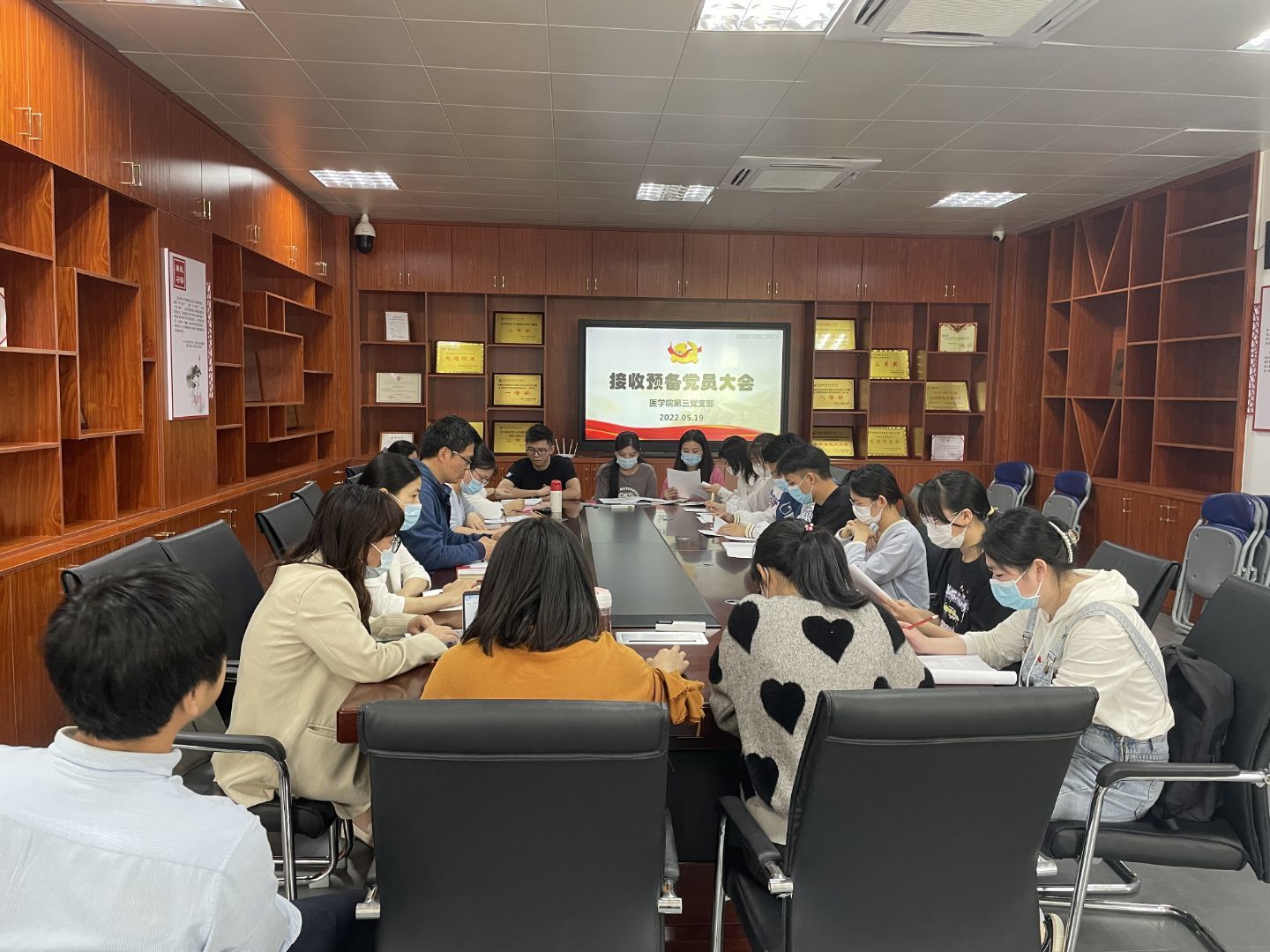 為進一步壯大黨員隊伍,凝聚組織力量,培養(yǎng)優(yōu)秀黨員,2022年5月19日下午,醫(yī)學院第三黨支部在實訓樓311室召開接收預備黨員大會。會議由支部書記陳銘主持,支部11名正式黨員全部參會。