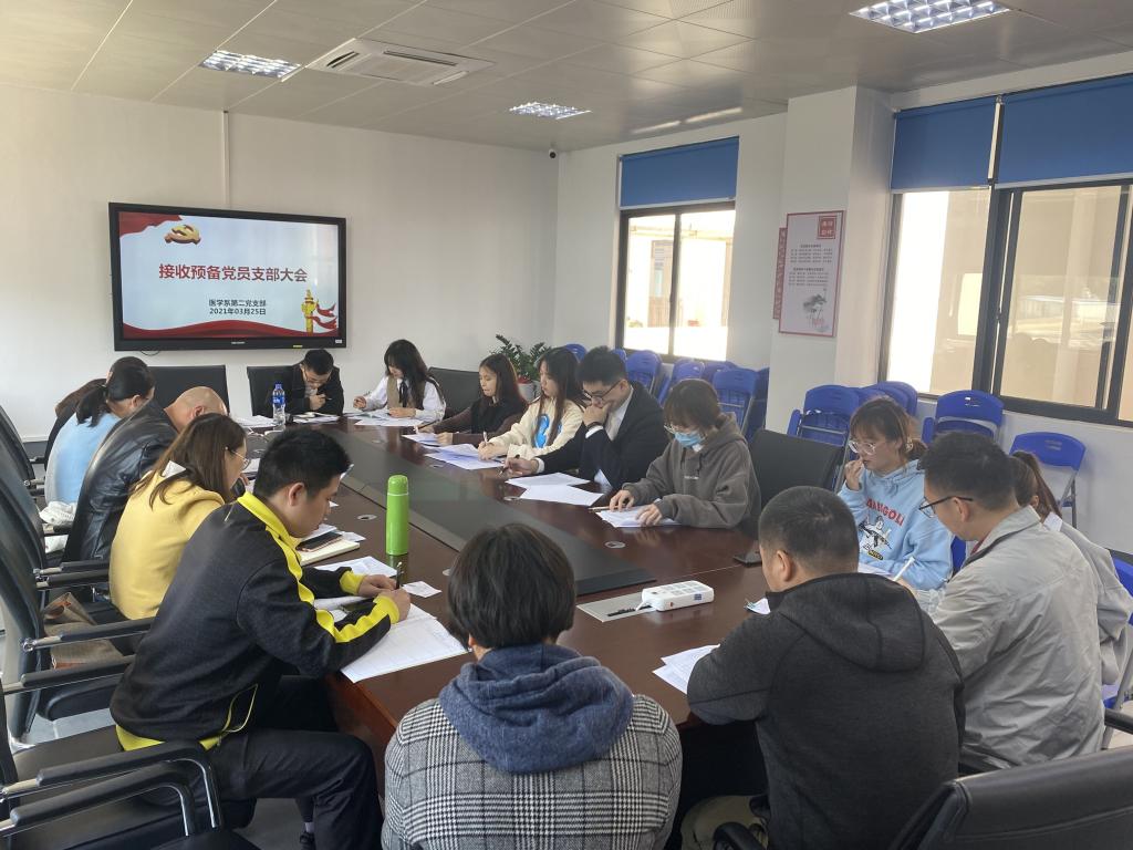 2021年3月25日上午,醫(yī)學(xué)系第二黨支部在實訓(xùn)樓311會議室召開接收預(yù)備黨員大會。會議由支部書記高長花同志主持,支部11名正式黨員,產(chǎn)假1名,事假1名,其余9名黨員全部與會。