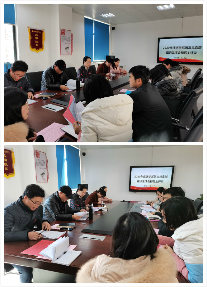 為鞏固深化“不忘初心、牢記使命”主題教育成果,提升基層黨組織政治功能和組織力,教育引導(dǎo)廣大黨員增強(qiáng)“四個意識”、堅定“四個自信”、做到“兩個維護(hù)”,醫(yī)學(xué)系第三黨支部按照學(xué)院黨委和系黨總支的工作部署,于2021年1月12日中午在實(shí)訓(xùn)樓311召開組織生活會和民主評議黨員工作。副院長鄭翠紅同志以黨員身份參加此次組織生活會,醫(yī)學(xué)系黨總支書記邱滾忠列席,會議由黨支部書記陳銘主持。