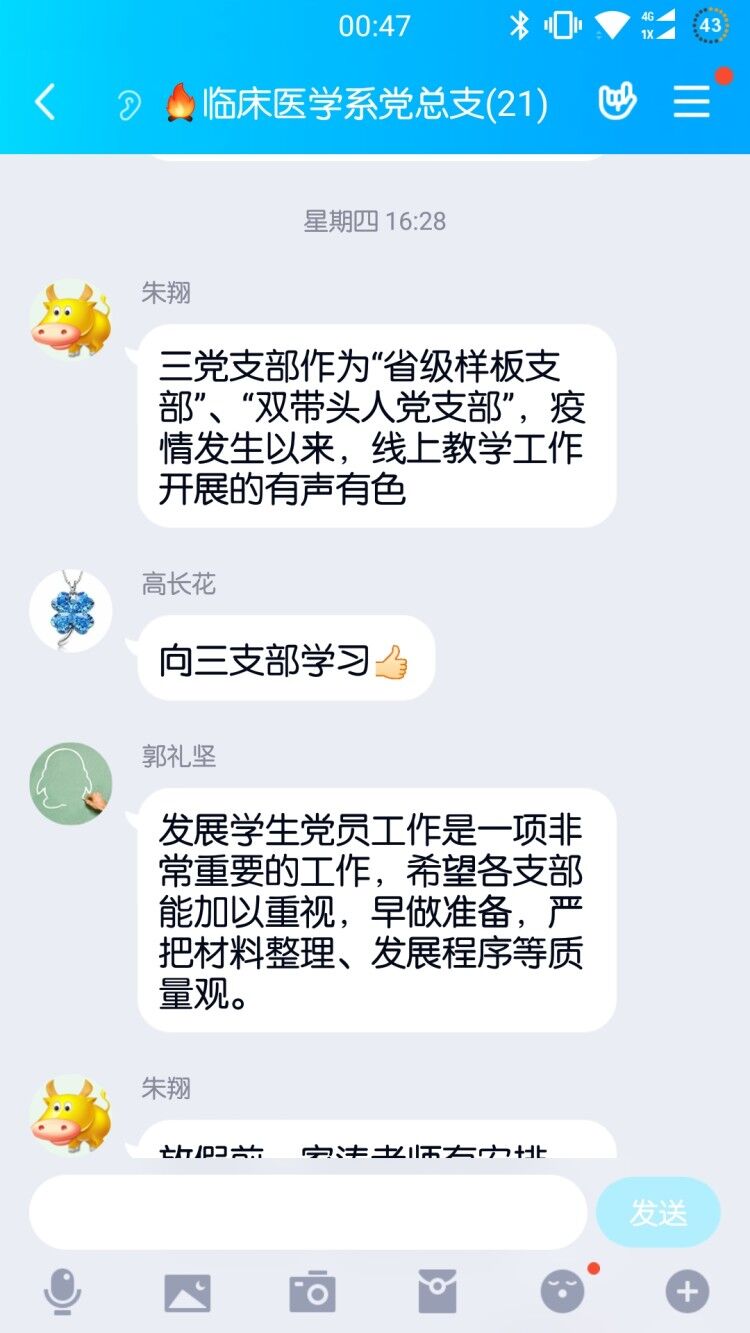 2020年3月12日,臨床醫(yī)學(xué)系黨總支在QQ群召開2月份支部書記例會(huì),會(huì)議由系黨總支負(fù)責(zé)人陳俊穎主持。