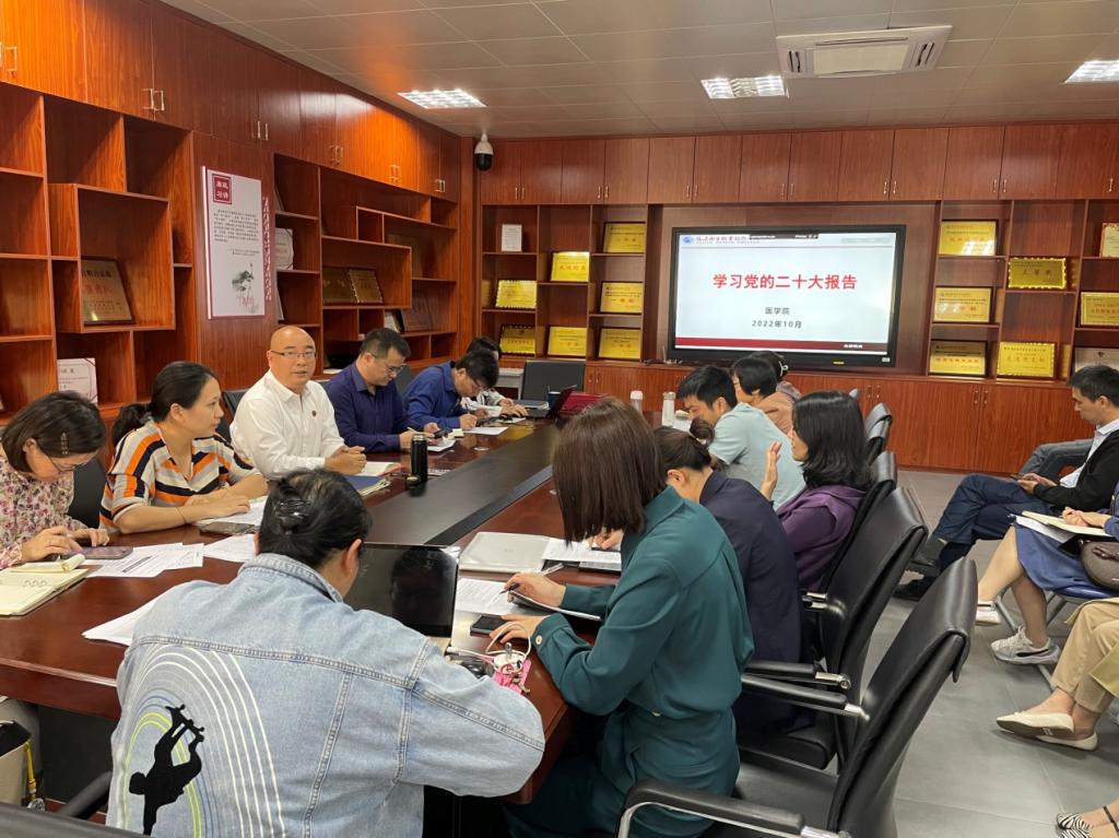 10月20日,醫(yī)學(xué)院黨總支書記邱滾忠主持召開黨總支理論學(xué)習(xí)中心組(擴(kuò)大)會(huì)議,專題學(xué)習(xí)習(xí)近平總書記在黨的二十大開幕會(huì)上的報(bào)告,醫(yī)學(xué)院全體教職工參加了會(huì)議。