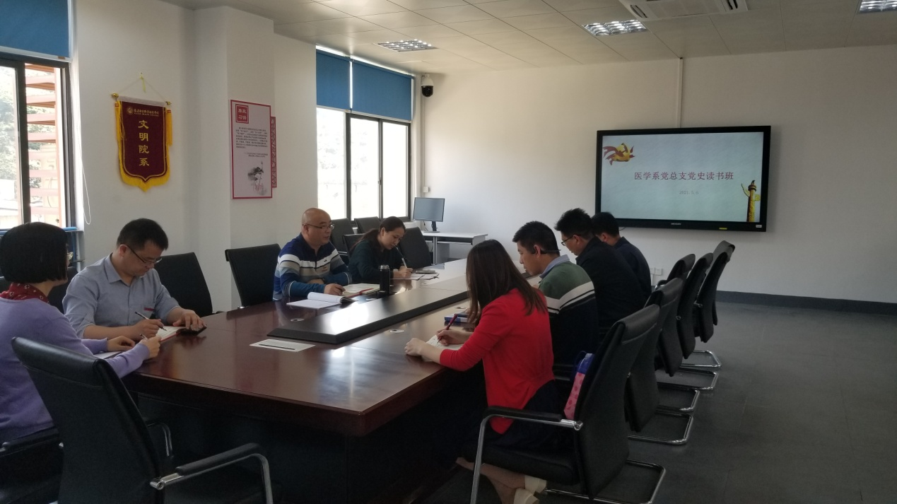 5月6日,醫(yī)學(xué)系黨總支黨史專題讀書班正式開班,并開展第一次學(xué)習(xí)活動。系黨總支全體委員及各黨支部書記參加了此次活動。