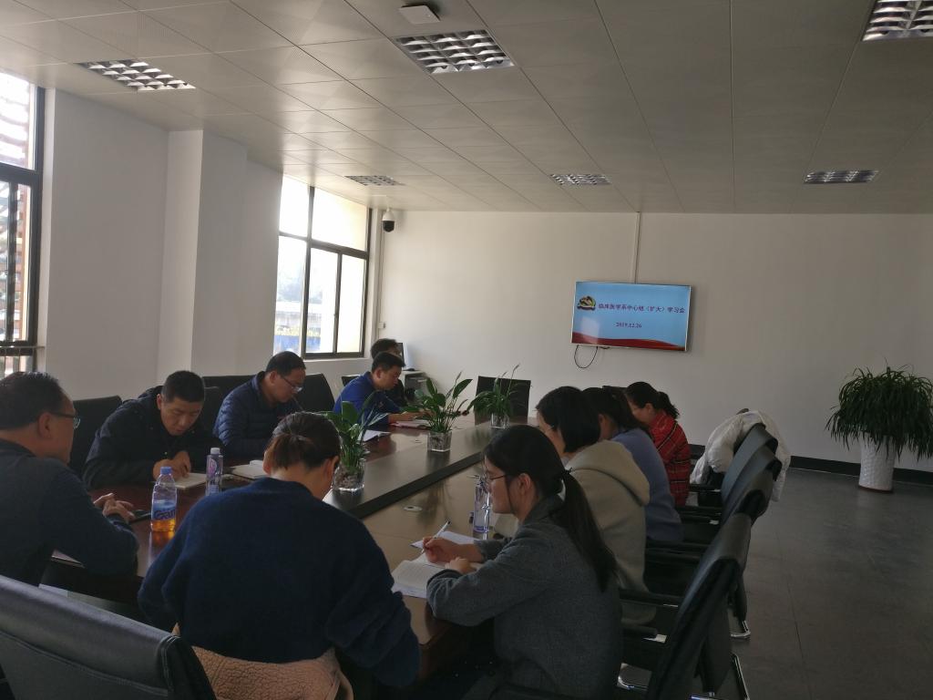 2019年12月26日,臨床醫(yī)學(xué)系在實訓(xùn)樓310召開中心組(擴大)學(xué)習(xí)會議,學(xué)習(xí)《習(xí)近平在福州》、《習(xí)近平在慶祝澳門回歸20周年大會上的講話》、《新時代愛國主義教育實施綱要》,會議由系主任郭禮堅同志主持。