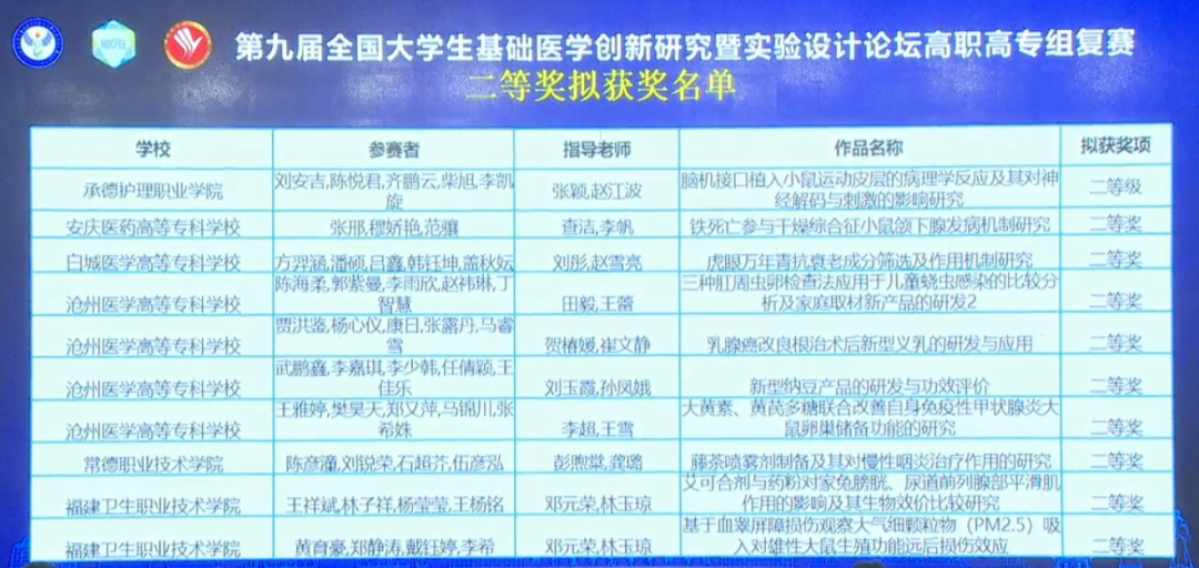 5月20日,由高等學校國家級實驗教學示范中心聯(lián)席會基礎醫(yī)學組主辦的第九屆全國大學生基礎醫(yī)學創(chuàng)新研究暨實驗設計論壇高職高專組復賽在邢臺醫(yī)學高等??茖W校舉行。全國共有56所高職高專院校共199項作品參賽,我校2項作品入選復賽。