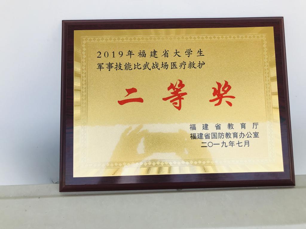 全省高校32支參賽隊(duì)伍,決出一等獎(jiǎng)2名,二等獎(jiǎng)4名,三等獎(jiǎng)6名,我校成績(jī)位列第6,前5位均為本科院校,獲得“2019年福建省大學(xué)生軍事技能比武戰(zhàn)場(chǎng)救護(hù)項(xiàng)目”二等獎(jiǎng)的出色成績(jī)!