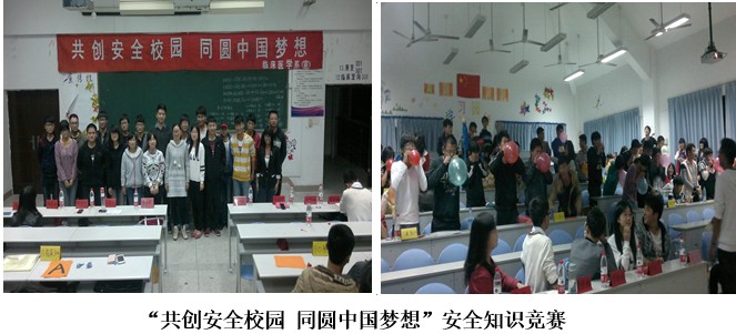 為加強(qiáng)同學(xué)們對(duì)宿舍安全知識(shí)的全面了解,提高安全防范意識(shí),增強(qiáng)將理論知識(shí)運(yùn)用實(shí)際的能力,以及對(duì)突發(fā)事件的緊急處理能力,系學(xué)生會(huì)保衛(wèi)部于11月21日19:30在系部二階舉行”共創(chuàng)安全校園同圓中國(guó)夢(mèng)想”安全知識(shí)競(jìng)賽。