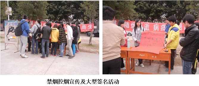 為營(yíng)造健康清新的宿舍及校園環(huán)境,進(jìn)一步杜絕吸煙現(xiàn)象,11月26日12:30,臨床醫(yī)學(xué)系兩委會(huì)在一餐門(mén)口前開(kāi)展了“健康隨煙而逝病痛隨煙而生”校園禁煙控?zé)熜麄骷按笮秃灻顒?dòng)。本次活動(dòng)得到了院系領(lǐng)導(dǎo)、老師和同學(xué)們的關(guān)注,他們都紛紛駐足在宣傳橫幅上簽字,以表達(dá)對(duì)禁煙控?zé)煿ぷ鞯拇罅χС?。同時(shí),也希望通過(guò)這一活動(dòng)讓每一位同學(xué)都能夠自覺(jué)規(guī)范行為,堅(jiān)決做到禁煙控?zé)煟瑸閯?chuàng)建無(wú)煙校園貢獻(xiàn)自己的一份力量。