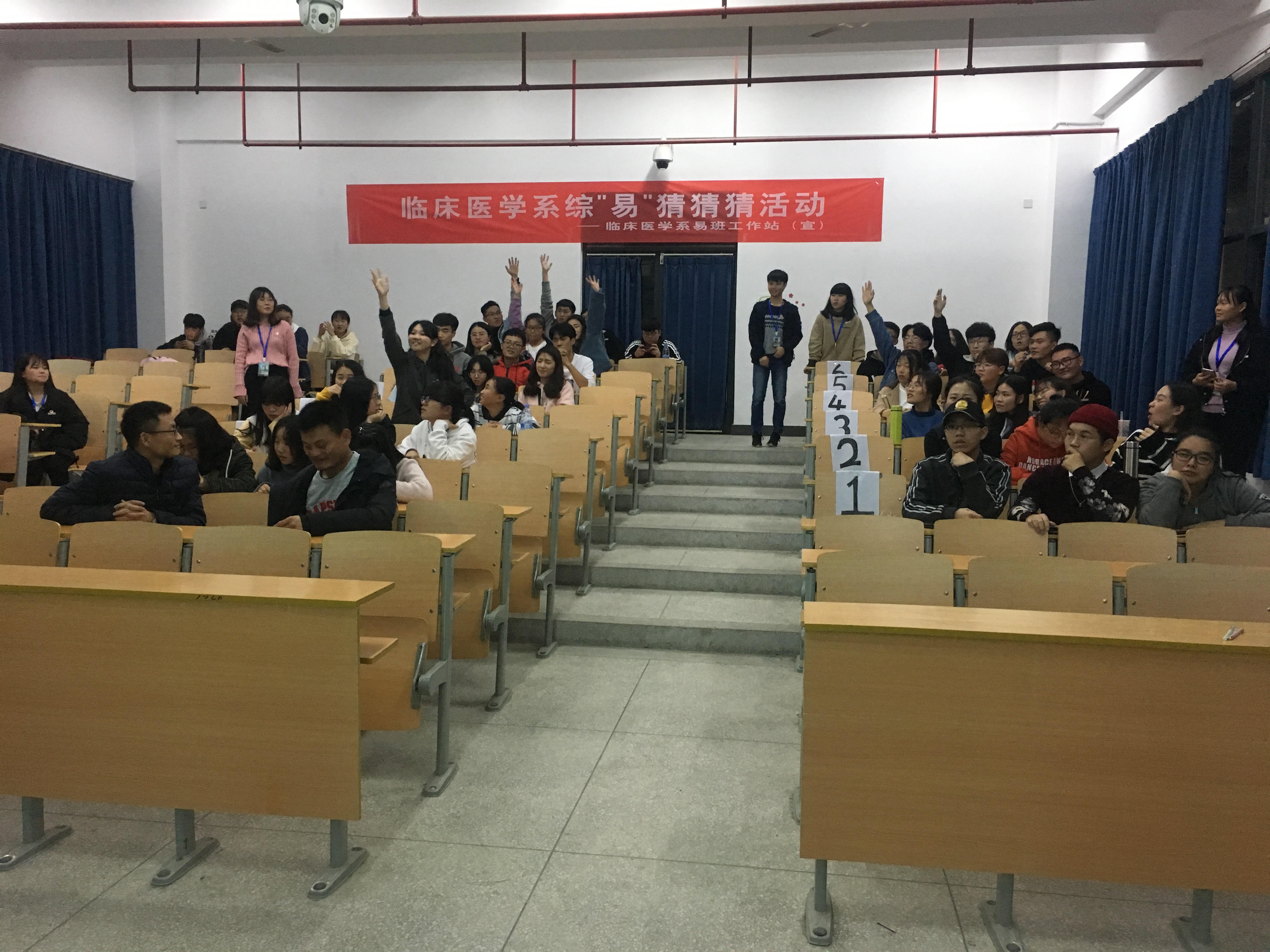 為弘揚(yáng)健康向上的校園文化,展示時(shí)代風(fēng)采,調(diào)動(dòng)青春活躍的學(xué)習(xí)和生活氣氛,培養(yǎng)對(duì)音樂節(jié)奏的感知能力。臨床醫(yī)學(xué)系于12月20日在實(shí)訓(xùn)樓209舉行“綜‘易’猜猜猜活動(dòng)”,臨床系團(tuán)總支謝林輝副書記、輔導(dǎo)員黃惠龍老師、基礎(chǔ)部林玉平老師及17級(jí)兩委會(huì)成員出席此次活動(dòng)。