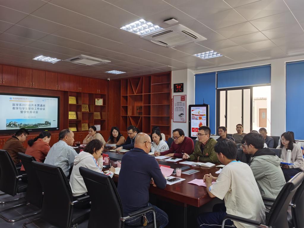 2021年11月30日,醫(yī)學(xué)系開展2021級(jí)高本貫通班教學(xué)與學(xué)生管理工作會(huì)議暨學(xué)生座談會(huì),校長許能鋒、副校長鄭翠紅,教務(wù)處、學(xué)生工作部負(fù)責(zé)人,黨政辦公室相關(guān)人員、醫(yī)學(xué)系黨政負(fù)責(zé)人、輔導(dǎo)員、醫(yī)學(xué)系及醫(yī)學(xué)基礎(chǔ)部12位班導(dǎo)師、學(xué)生代表參加座談會(huì)。
