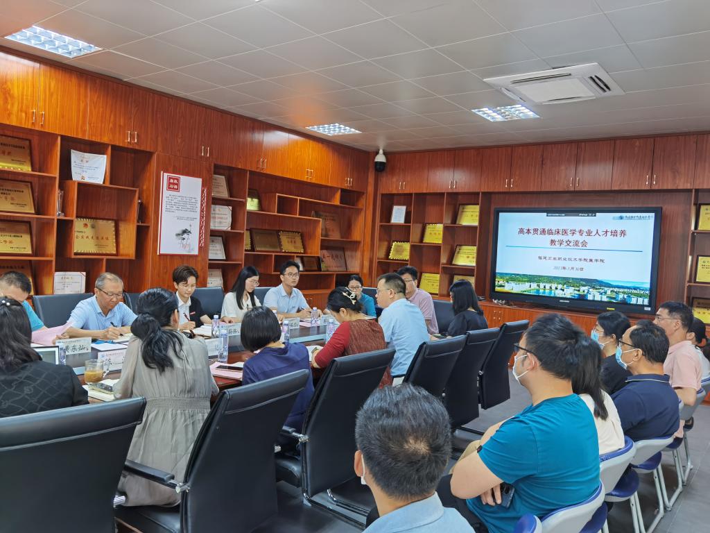 為推動主題教育走深走實,進一步加強人才培養(yǎng)、專業(yè)建設、師資培育等方面的交流合作,2023年5月30日,福建醫(yī)科大學健康學院院長劉豫瑞一行6人來校召開高本貫通臨床醫(yī)學專業(yè)人才培養(yǎng)教學交流會。教務處、實習實訓中心負責人,醫(yī)學院、醫(yī)學技術系相關領導,臨床醫(yī)學專業(yè)負責人、相關教研室主任、專業(yè)教師代表以及學生輔導員參加交流會。會議由醫(yī)學院副院長鄧元榮主持。