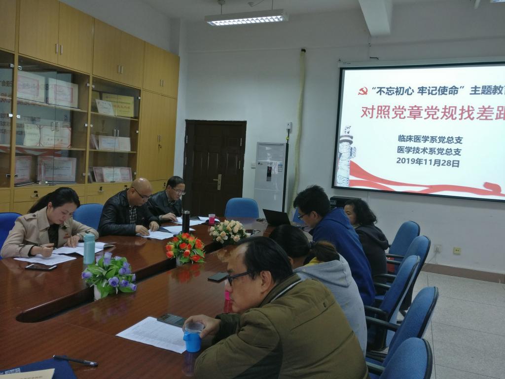為扎實(shí)有序推進(jìn)“不忘初心、牢記使命”主題教育工作,11月28日,臨床醫(yī)學(xué)系黨總支召開對照黨章黨規(guī)找差距專題會議。系領(lǐng)導(dǎo)班子全體成員,學(xué)院第七巡回指導(dǎo)組邱滾忠、黃玲云列席會議。會議由系黨總支負(fù)責(zé)人陳俊穎主持。