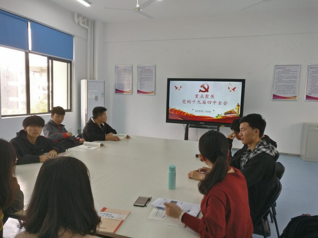 形勢政策課以《重點聚焦黨的十九屆四中全會》為題,從十九屆四中全會基本概況講起,對四中全會公報進(jìn)行了深入的解讀,從“一個總體目標(biāo)”延伸到十三個“堅持和完善”,并用清晰的9點提法對公報進(jìn)行了概括和總結(jié)。