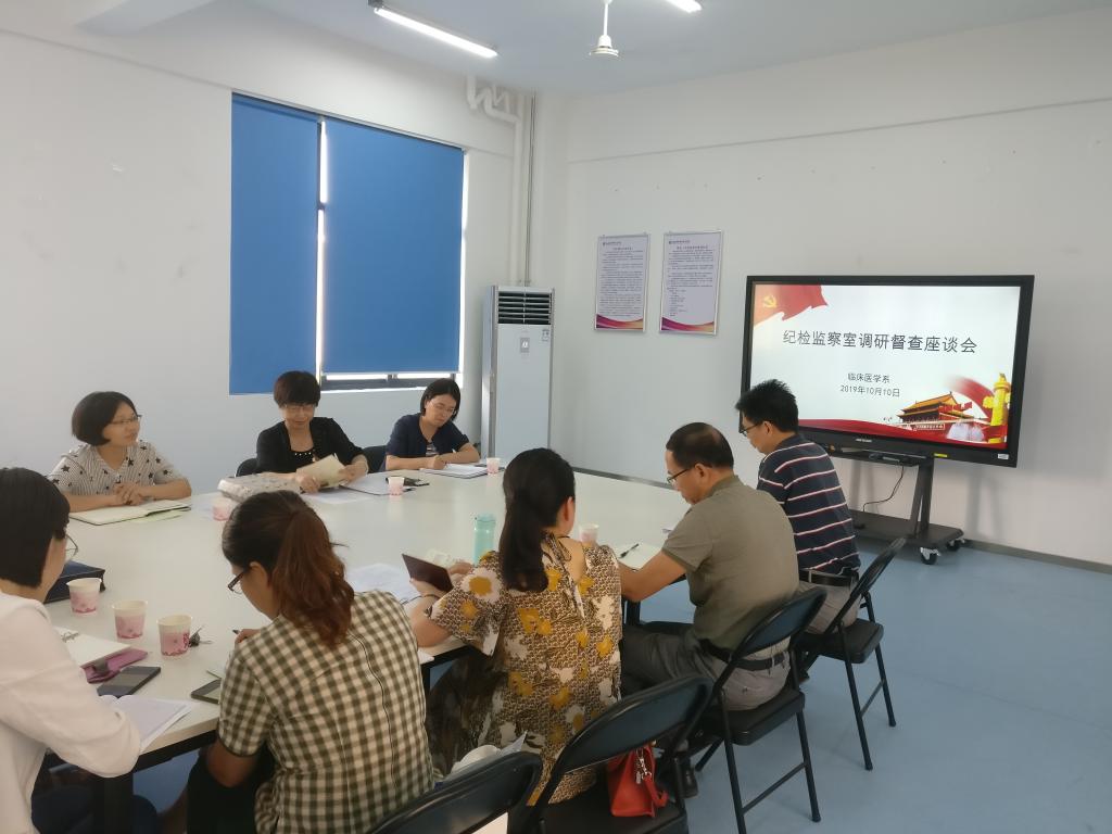 10月10日,學(xué)院紀(jì)檢監(jiān)察室程劍芬主任及廖曉愿科長赴臨床醫(yī)學(xué)系開展“不忘初心、牢記使命”主題教育調(diào)研工作會(huì)。臨床醫(yī)學(xué)系郭禮堅(jiān)主任、黨總支負(fù)責(zé)人陳俊穎、各教研室主任以及臨床系師生代表參加本次調(diào)研會(huì)。