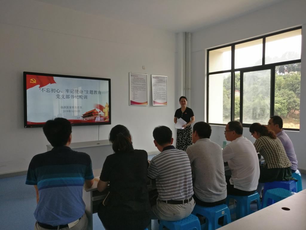 2019年10月8日,臨床醫(yī)學(xué)系黨總支在實訓(xùn)樓409召開“不忘初心、牢記使命”主題教育專題輔導(dǎo)課暨黨支部書記輪訓(xùn),主題為“政治建設(shè):黨的根本性建設(shè)”,由系黨總支負(fù)責(zé)人陳俊穎主持,系全體教師黨員參與。