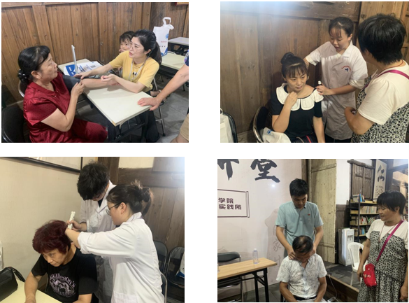 醫(yī)學(xué)院教師第三黨支部的師生黨員們還根據(jù)群眾的需要,為他們提供了推拿、拔罐、刮痧等中醫(yī)特色療法義診,以及測量血壓等服務(wù),獲得群眾一致好評。大家表示,“中醫(yī)科普義診活動(dòng)很好,在家門口就可以理療保健,還能了解中醫(yī)養(yǎng)生知識?!?/p>