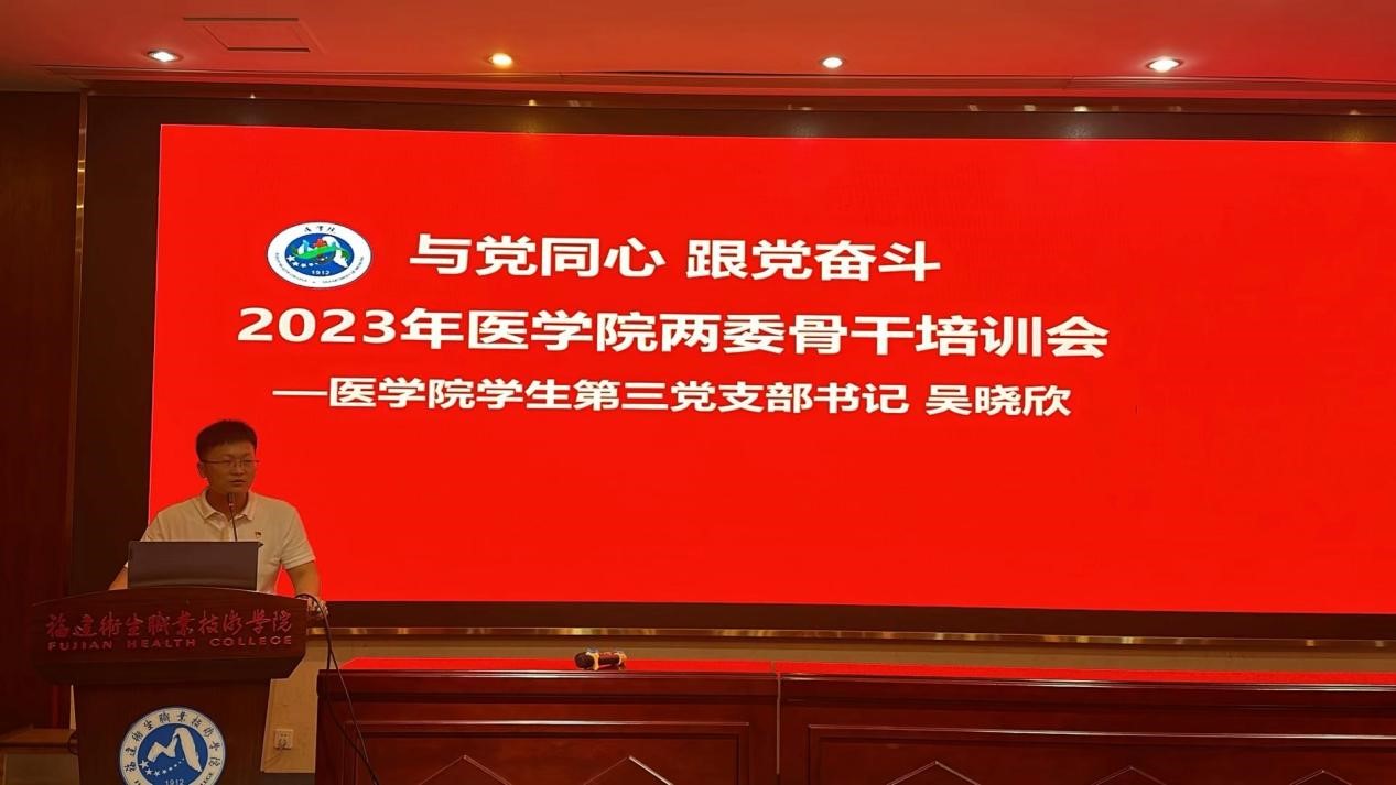 為進(jìn)一步發(fā)揮學(xué)生黨支部戰(zhàn)斗堡壘作用,提升團(tuán)學(xué)干部的政治覺悟,堅(jiān)持以黨建帶團(tuán)建,抓團(tuán)建促黨建,努力形成黨團(tuán)互促互進(jìn)良好局面。6月7日,醫(yī)學(xué)院學(xué)生第三黨支部聯(lián)合醫(yī)學(xué)院團(tuán)總支開展以“與黨同心 跟黨奮斗”為題的兩委骨干培訓(xùn)會。醫(yī)學(xué)院學(xué)生第三黨支部全體黨員及醫(yī)學(xué)院21、22級兩委骨干參會,會議由醫(yī)學(xué)院學(xué)生第三黨支部書記吳曉欣主持。