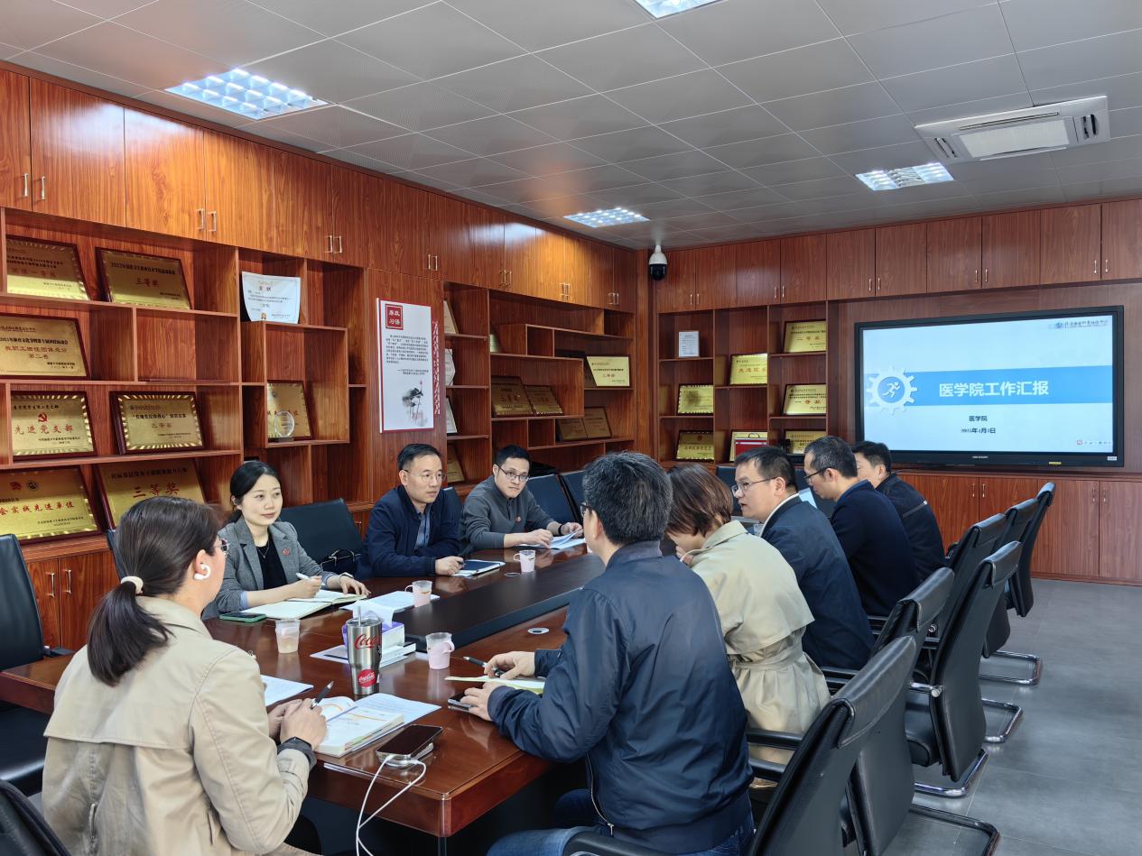 4月3日,校長徐偉來到醫(yī)學(xué)院開展調(diào)研,學(xué)校黨政辦主任黃曦隨行,醫(yī)學(xué)院領(lǐng)導(dǎo)班子參加了調(diào)研工作。