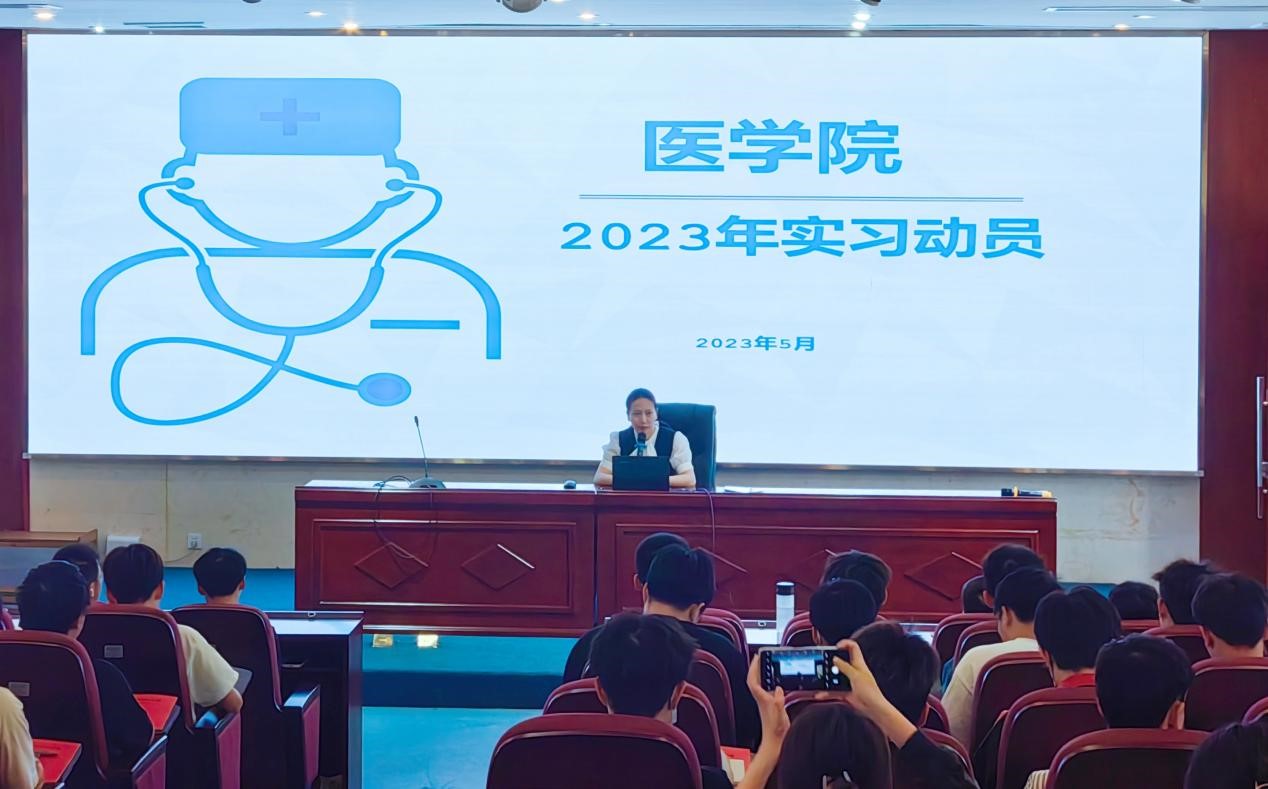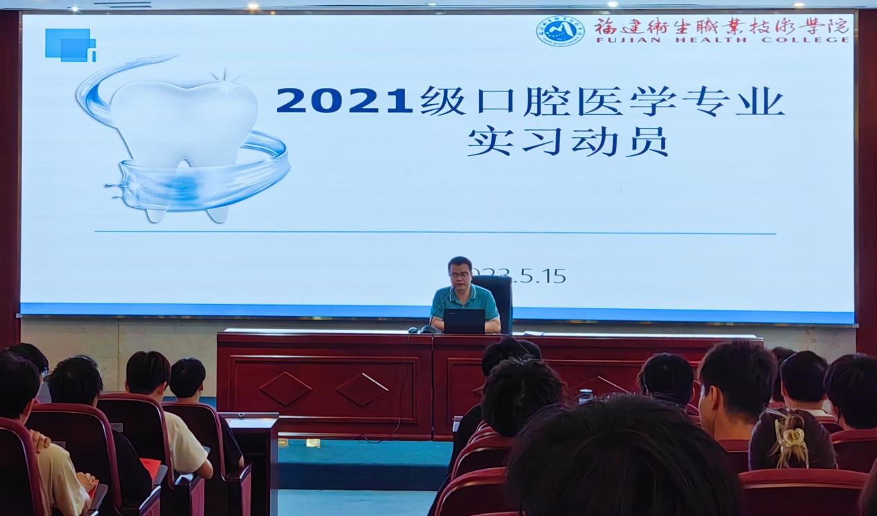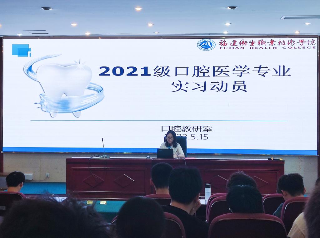 醫(yī)學(xué)院于5月15日在實(shí)訓(xùn)樓報(bào)告廳開(kāi)展2021級(jí)口腔醫(yī)學(xué)專(zhuān)業(yè)學(xué)生實(shí)習(xí)動(dòng)員大會(huì),醫(yī)學(xué)院副院長(zhǎng)鄧元榮、黨總支副書(shū)記陳潔、口腔醫(yī)學(xué)專(zhuān)業(yè)教研室主任全程玲、輔導(dǎo)員吳曉欣及21級(jí)口腔專(zhuān)業(yè)121名學(xué)生參加了此次動(dòng)員大會(huì)。