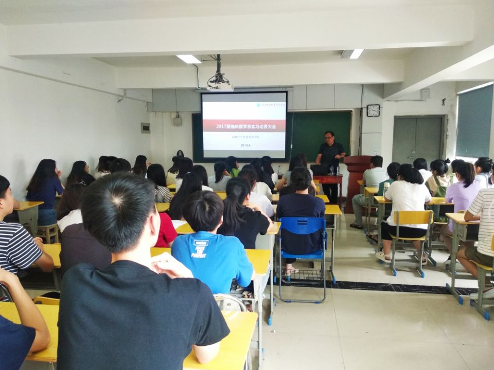 在實(shí)習(xí)動(dòng)員大會(huì)上,郭禮堅(jiān)主任首先向同學(xué)們介紹了實(shí)習(xí)的重要性、實(shí)習(xí)期間的紀(jì)律要求,特別強(qiáng)調(diào)了實(shí)習(xí)生要在實(shí)習(xí)中培養(yǎng)嚴(yán)肅認(rèn)真的工作態(tài)度,杜絕差錯(cuò)事故的發(fā)生,要關(guān)心病患,關(guān)愛生命,希望同學(xué)們盡快調(diào)整好心態(tài),為實(shí)習(xí)做好準(zhǔn)備;同時(shí),林國威主任、梁艷科長還具體介紹了臨床實(shí)習(xí)的教學(xué)要求,實(shí)習(xí)成績的評(píng)定方法等;金建文老師針對(duì)專業(yè)角度對(duì)同學(xué)們進(jìn)行了動(dòng)員,強(qiáng)調(diào)同學(xué)們要認(rèn)真學(xué)習(xí)專業(yè)知識(shí),為即將到來的實(shí)習(xí)做好充足準(zhǔn)備,同時(shí)要注意實(shí)習(xí)中的醫(yī)療安全,學(xué)會(huì)處理好工作中的社會(huì)關(guān)系;輔導(dǎo)員全程玲老師現(xiàn)場(chǎng)解答了學(xué)生的實(shí)習(xí)相關(guān)問題。通過此次實(shí)習(xí)動(dòng)員大會(huì),使得即將進(jìn)入臨床實(shí)習(xí)的同學(xué)們對(duì)實(shí)習(xí)有了深入的了解和全面的認(rèn)識(shí),更加明確了實(shí)習(xí)的目的和重要性,相信大家一定會(huì)在實(shí)習(xí)中以飽滿的熱情和良好的狀態(tài)完成實(shí)習(xí)任務(wù),并收獲累累碩果,為今后走上工作崗位打下堅(jiān)實(shí)的基礎(chǔ)。