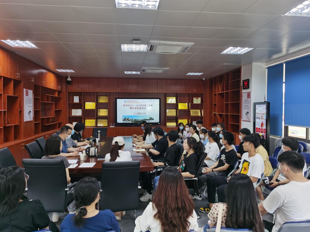為促進(jìn)師生的溝通與交流,收集學(xué)生在前半學(xué)期課堂學(xué)習(xí)中遇到的問題,醫(yī)學(xué)院于2022年4月26日中午在實訓(xùn)樓311會議室召開期中座談會。參加此次會議的有學(xué)校督導(dǎo)唐榮耀、唐青,醫(yī)學(xué)院副院長(主持工作)鄧元榮、副院長兼實訓(xùn)中心主任林國威,副院長兼辦公室主任劉能英以及醫(yī)學(xué)院20、21級各班學(xué)委代表。