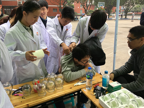 通過前期張貼海報等的宣傳和推廣,義診小分隊在學院受到了船政交通職業(yè)學院同學們的熱情歡迎。同學們根據(jù)自己的需求選擇相應就診區(qū),場面熱鬧而有序,每張義診桌都被熱情的同學們包圍。小分隊隊員不僅為同學們量血壓、口腔檢查、刮痧、按摩保健等,還耐心地普及醫(yī)學知識,宣傳健康常識,獲得船政交通職業(yè)學院師生們的肯定和好評。