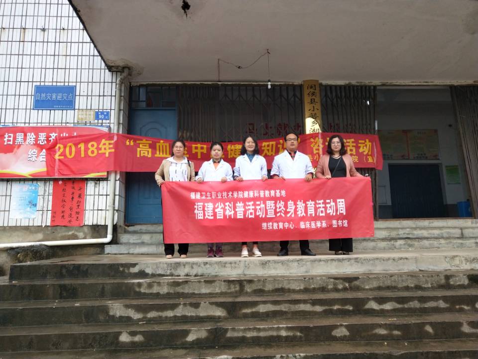為響應“全民終身教育活動周”號召,迎接第21個全國高血壓日,做好高血壓等醫(yī)學知識科普工作,10月15日,繼續(xù)教育中心、臨床醫(yī)學系、圖書館組織了“科普進鄉(xiāng)村”高血壓義診活動,旨在通過此項活動提高人們對高血壓危害的認識,增強對高血壓病及其并發(fā)癥的防范意識。本次義診活動地點設在福州閩侯縣小箬鄉(xiāng)湖柄村的小箬鄉(xiāng)衛(wèi)生院,閩侯縣科學技術協(xié)會主席潘桂光、臨床醫(yī)學林國威副主任、圖書館副館長張麗萍、吳艷芳、王雯婷、梁晨老師參加了本次活動。