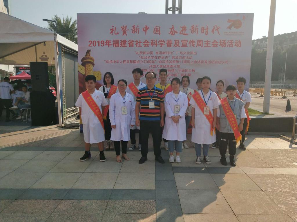 10月19日上午,臨床醫(yī)學(xué)系師生應(yīng)邀參加由福建省社會科學(xué)界聯(lián)合會舉辦的2019 年福建省社會科學(xué)普及宣傳周活動,旨在向廣大市民科普中醫(yī)、中藥文化,提高人們對中醫(yī)保健養(yǎng)生的認(rèn)識。本次活動由臨床醫(yī)學(xué)系林國威副主任、蔡唐彥老師、沈書泓老師以及臨床醫(yī)學(xué)系、藥學(xué)系、護(hù)理系志愿者同學(xué)共同參與。