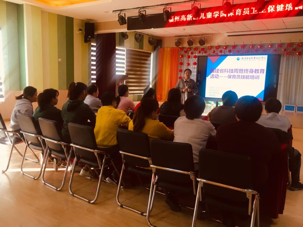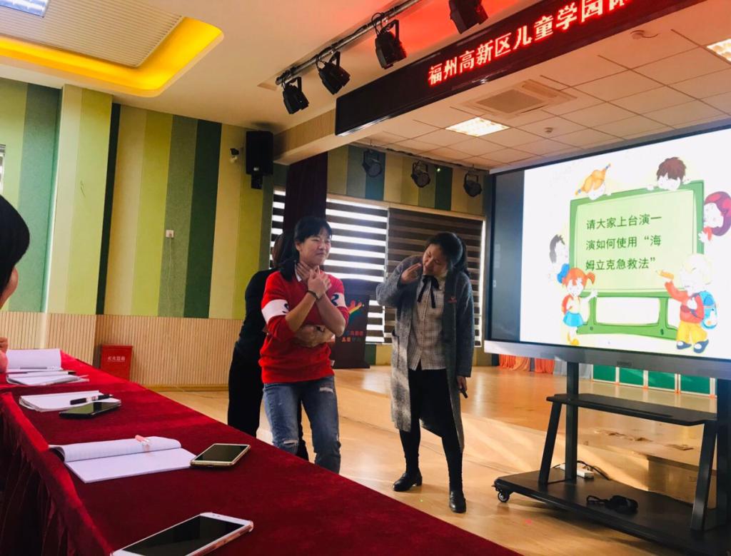 2019年11月29日下午,臨床醫(yī)學系在福州高新區(qū)兒童學園舉辦了關于“保育員衛(wèi)生保健”的技能培訓科普講座,該活動是2019年福建省科技周暨終身教育活動的一部分,由臨床醫(yī)學系外科教研室巫詩雨老師及閩侯南嶼高新區(qū)兒童學園10余名保育員共同參與。活動開始,巫詩雨老師針對保育員日常工作內(nèi)容的特殊性,通過提問的方式讓座保育員們充分了解到“手衛(wèi)生”的重要性,以及洗手是預防疾病,促進兒童健康成長最簡單、最廉價的健康干預方式。然后通過形象的洗手口訣“內(nèi)、外、夾、弓、大、立、腕”現(xiàn)場演示了標準七步洗手法?;顒拥牡诙糠?,巫詩雨老師圍繞氣道異物梗阻這一常見兒童意外損傷的處理方法,以“他救、自救、特殊人群救治”三方面深入淺出地為各位保育員進行了“海姆立克急救法”的講解,并現(xiàn)場示范教學與大家進行互動。