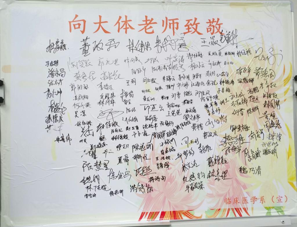 “大體老師”是醫(yī)學(xué)界對遺體捐贈者的尊稱。這些遺體捐獻(xiàn)者用他們的軀體,讓學(xué)生們直觀了解人體基本知識,是醫(yī)學(xué)學(xué)生的無語良師?;顒娱_始,學(xué)生代表周天陽和鄭妍冰同學(xué)分別帶來朗誦與感悟共享,醫(yī)學(xué)教育離不開人體標(biāo)本,正是有了大體老師的無私奉獻(xiàn),才能培養(yǎng)出醫(yī)術(shù)精湛的大夫。接著,全體老師與學(xué)生為大體老師默哀一分鐘,追思推動醫(yī)學(xué)教育事業(yè)發(fā)展的無語良師,為這份無言的奉獻(xiàn)表達(dá)最崇高的敬意,并敬獻(xiàn)菊花,在活動簽字墻簽字留念。