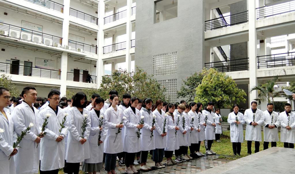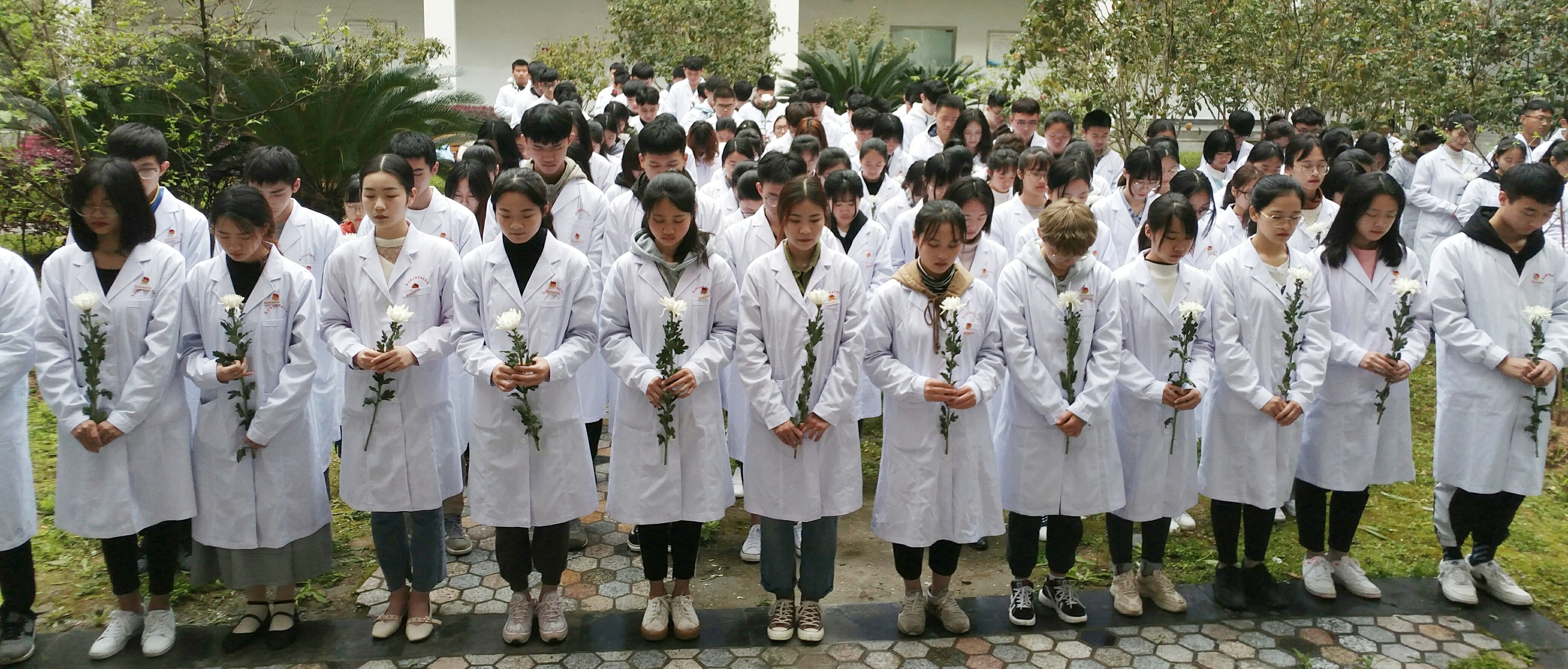 2019年4月3日,時(shí)值清明之際,臨床醫(yī)學(xué)系于基礎(chǔ)部一樓舉辦向大體老師致敬活動,系部領(lǐng)導(dǎo)、輔導(dǎo)員及學(xué)生代表近百人參加本次活動。