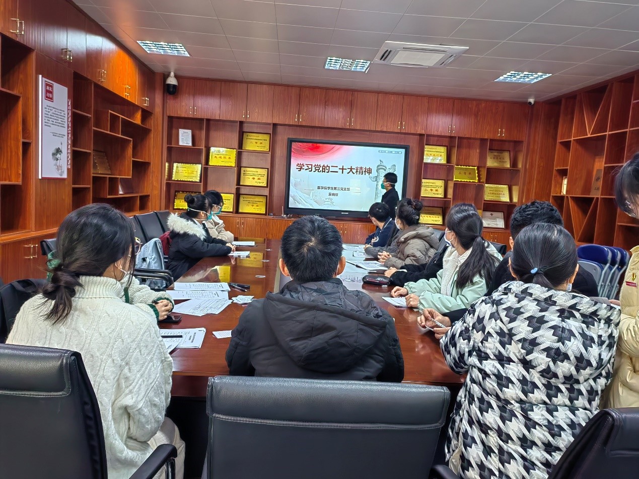 “過去黨代會的報(bào)告中,科技一般安排在經(jīng)濟(jì)建設(shè)中,教育一般是安排在社會建設(shè)中,人才安排在黨的建設(shè)中,黨的二十大報(bào)告第一次把科教興國、人才強(qiáng)國、創(chuàng)新驅(qū)動(dòng)發(fā)展三大戰(zhàn)略放在一起集中論述,系統(tǒng)部署,我國教育、科技和人才事業(yè)發(fā)展路徑更加清晰了?!?2月19日下午,醫(yī)學(xué)院實(shí)訓(xùn)樓311會議室激情四溢,醫(yī)學(xué)院學(xué)生第三黨支部書記吳曉欣正在給支部黨員講黨課,學(xué)習(xí)宣講黨的二十大精神。黨員們仔細(xì)聆聽,現(xiàn)場學(xué)習(xí)氛圍濃厚。