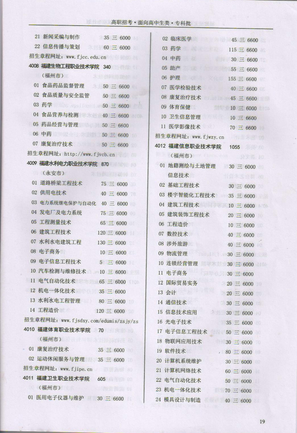 福建衛(wèi)生職業(yè)技術學院2016年高職招考招生計劃