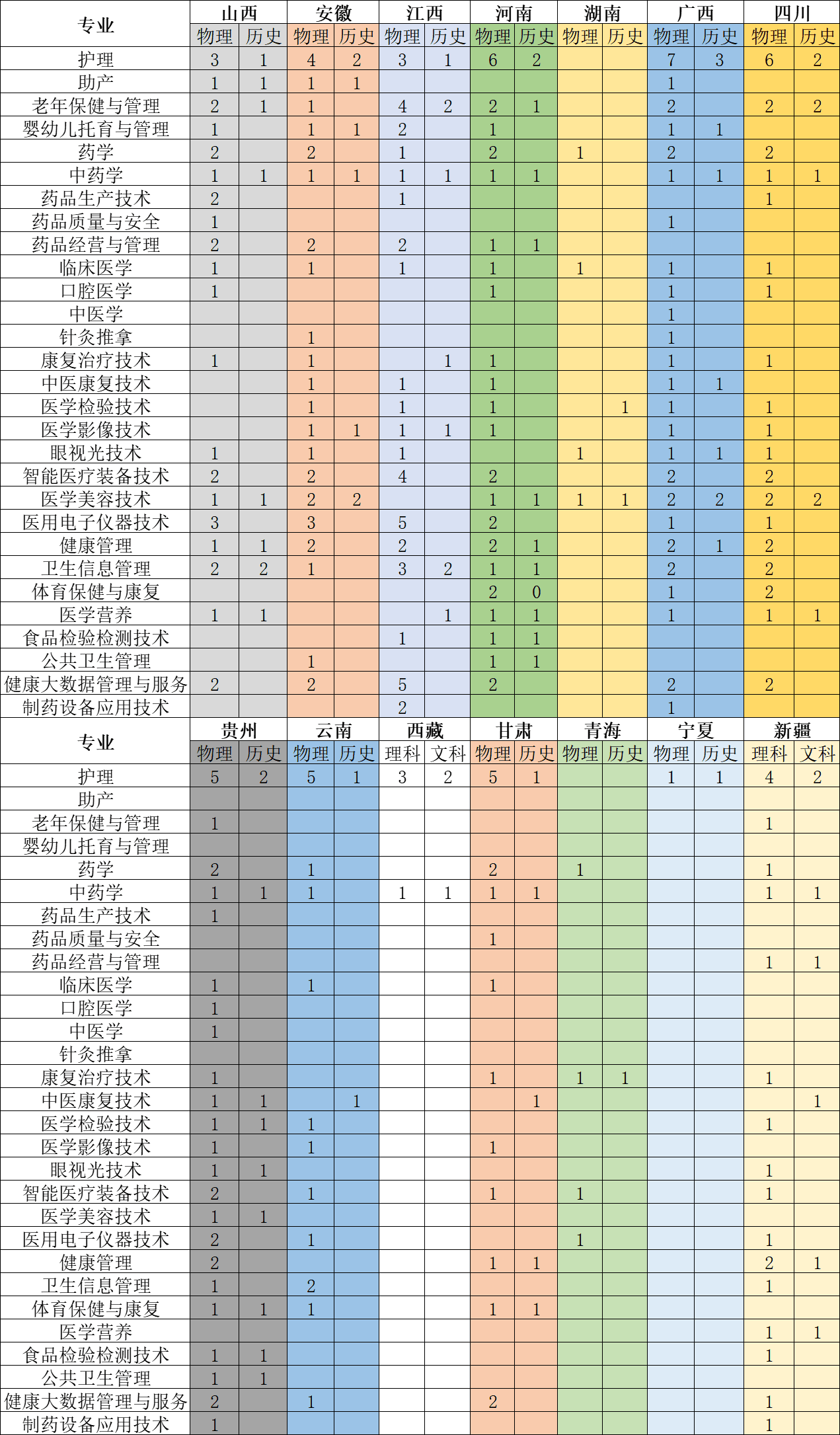 福建衛(wèi)生職業(yè)技術學院2025年省外普通高考分省分專業(yè)招生計劃